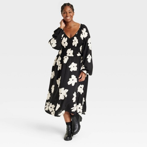 Women S Plus Size Balloon Long Sleeve Smocked Bodice Dress Ava Viv Black Floral X Target